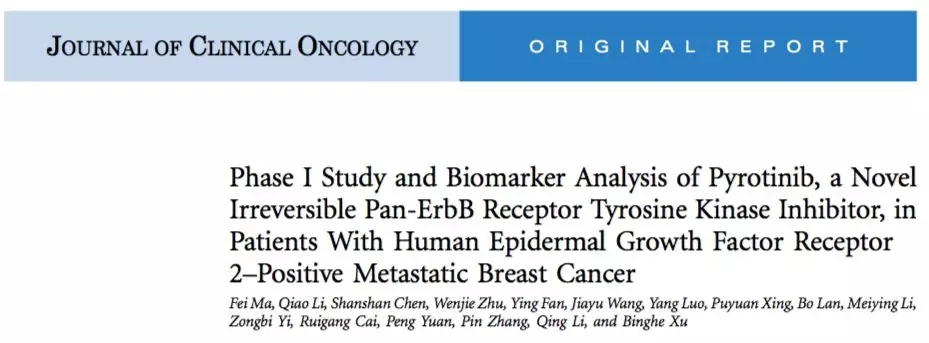 吡咯替尼是獲得科技部“重大新藥創(chuàng)制科技重大專項”支持,由恒瑞自主研發(fā)的1.1類新藥,2017年5月,吡咯替尼用于HER2陽性晚期乳腺癌患者的I期研究結(jié)果在全球頂級期刊《JCO》雜志(影響因子:24.008)首次全文發(fā)表,開創(chuàng)了中國自主研發(fā)抗腫瘤藥物僅僅憑借I期研究就登上全球頂級期刊的先河。同年9月,吡咯替尼向CFDA遞交上市申請,并憑借II期研究結(jié)果中極為出色的療效被CFDA列為優(yōu)先審評創(chuàng)新藥物。同年12月,這一II期臨床研究結(jié)果在全球最大的乳腺癌會議——圣安東尼奧乳腺癌大會上報道,并被大會列入2017年乳腺癌重大事件年度回顧。